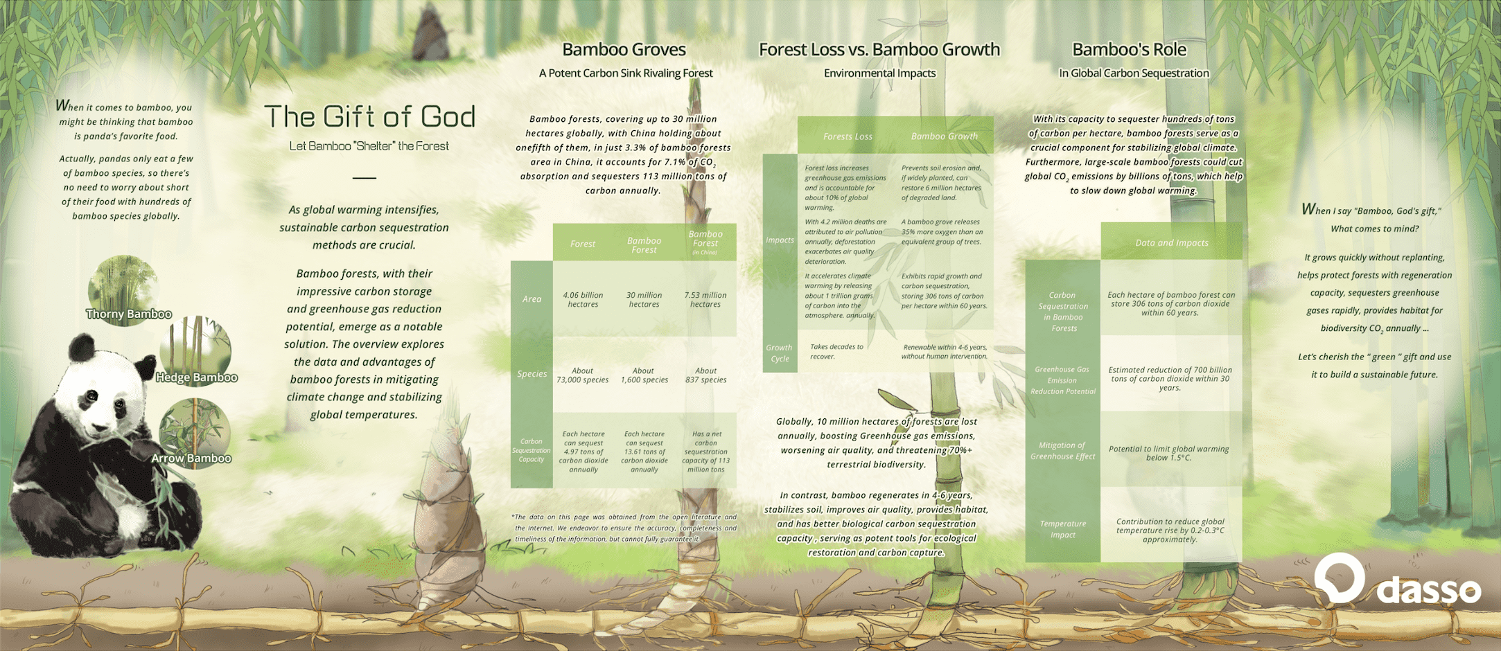 Bamboo, as a fast growing green resource without repeated planting, has a carbon sequestration capacity of 13.61 tons per hectare, far exceeding the amount of forest carbon sequestration, and is the preferred material to replace wood and reduce carbon emissions. Over the past 31 years, dasso has always been committed to the research and development and promotion of bamboo, and has continuously promoted the global green development process through practical actions.